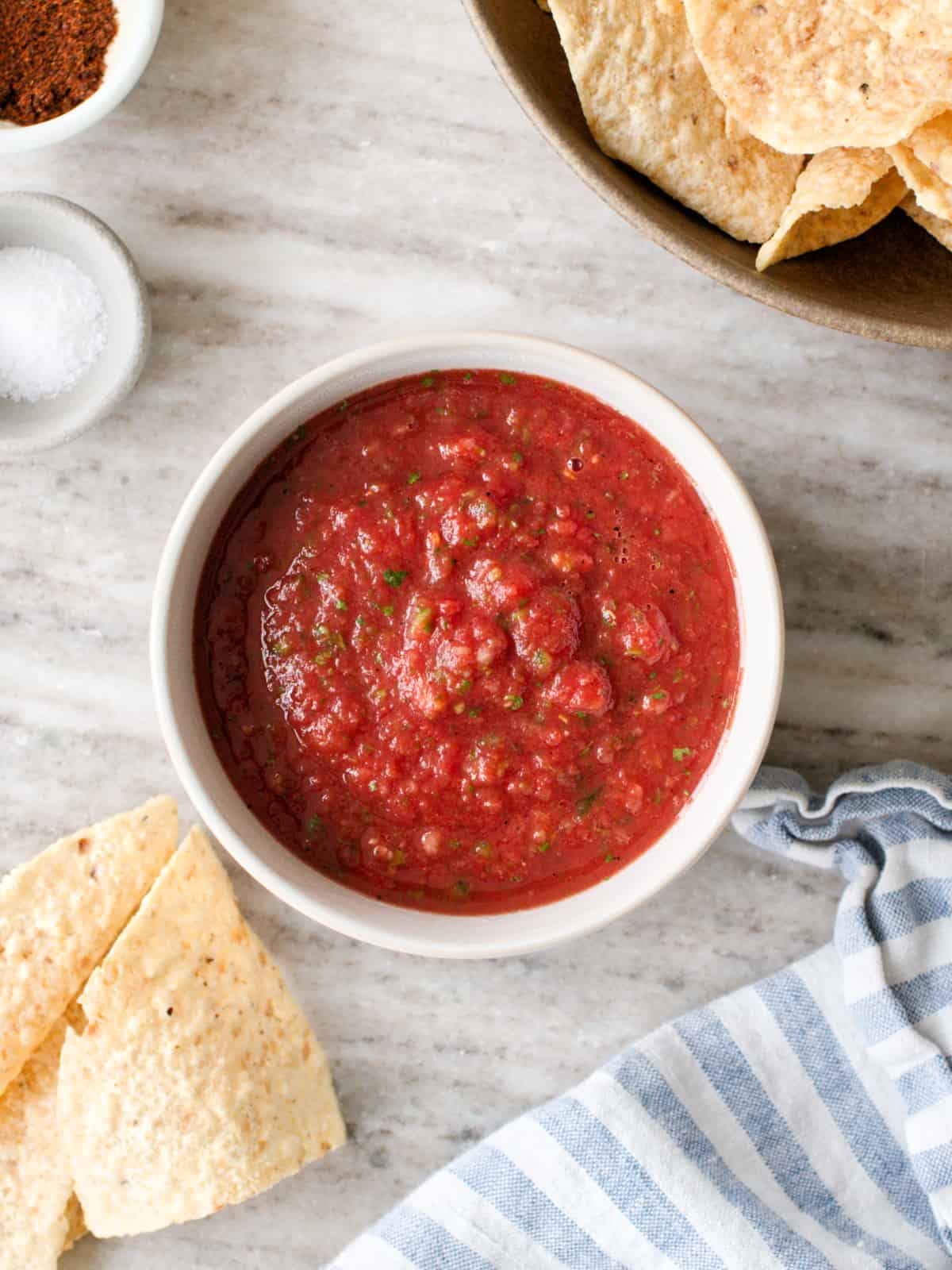 Salt: It's one of the most important ingredients for the best flavor. Under and oversalting are common mistakes when making salsa. I use 1 ½ teaspoons, but you can start with ½ teaspoon and salt to taste.